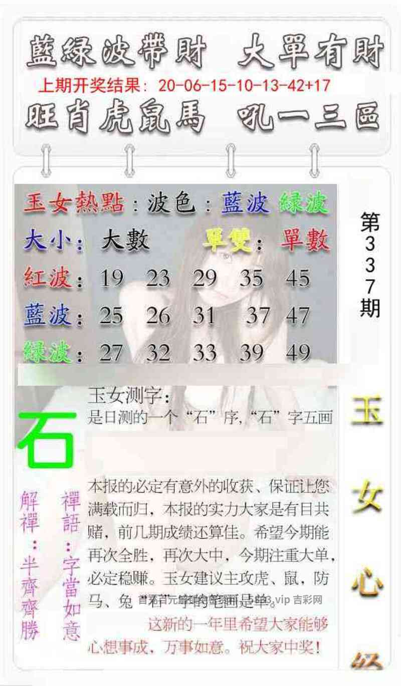331期澳门彩票中心开龙26 波色:蓝波绿波 头数:123头 尾数:2346015尾 生肖:猴鸡牛龙羊马狗蛇鼠 平特:猴猴猴 主码:22,34,21,33,29,41 防码:26,35,36,32,37,18 |